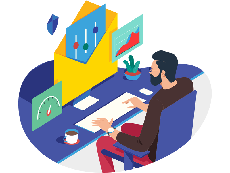 Use o nosso extenso painel de controle para configurar e gerenciar as contas de e-mail de sua organização onde estiver. É um centro de comando em nuvem que você pode acessar em qualquer dispositivo, seja desktop, web ou o aplicativo Zoho Mail Admin.