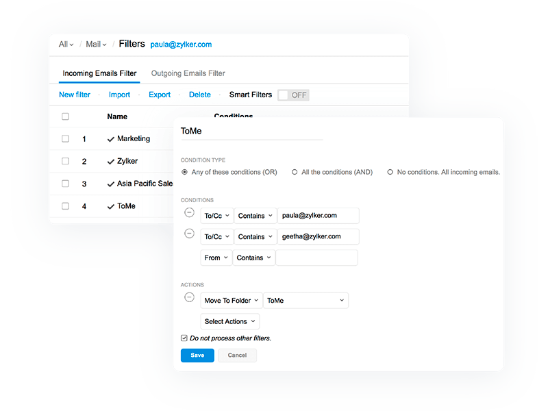 O Zoho Mail proporciona uma experiência de e-mail repleta de recursos que o ajuda a gerenciar seus e-mails melhor e trabalhar com mais eficiência.